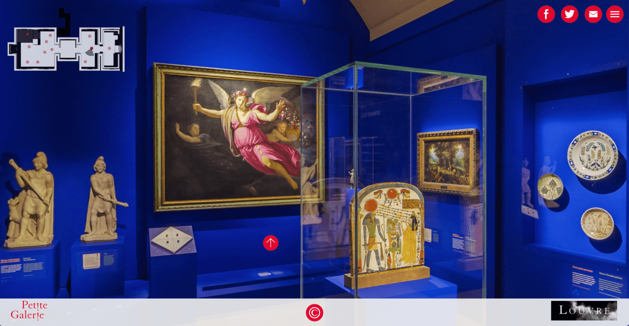 Le musée du Louvre propose des visites virtuelles de ses salles. Il est alors possible de contempler les œuvres, de lire les cartels et de se repérer grâce à un plan. C’est franchement bien fait.