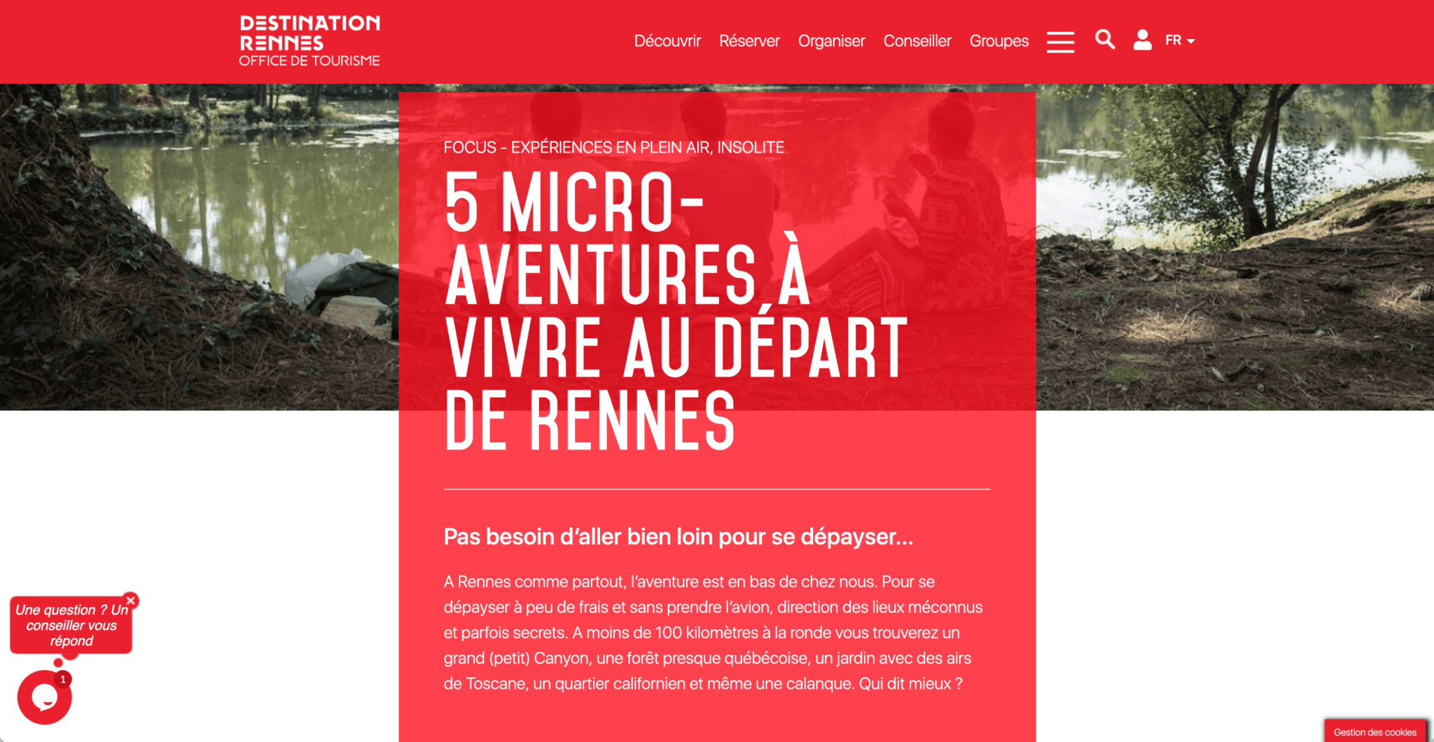 Destination Rennes propose sur son site 5 microaventures à vivre au départ de la ville. Road trip à pied pour découvrir les mosaïques d’Odorico et les graffitis de War en pleine ville, rando-vélo, paddle sur la Vilaine ou encore découverte d’un spot secret. La promesse est là. L’office du tourisme partage une carte, des informations pratiques et de quoi avoir envie de partir à l’aventure.
