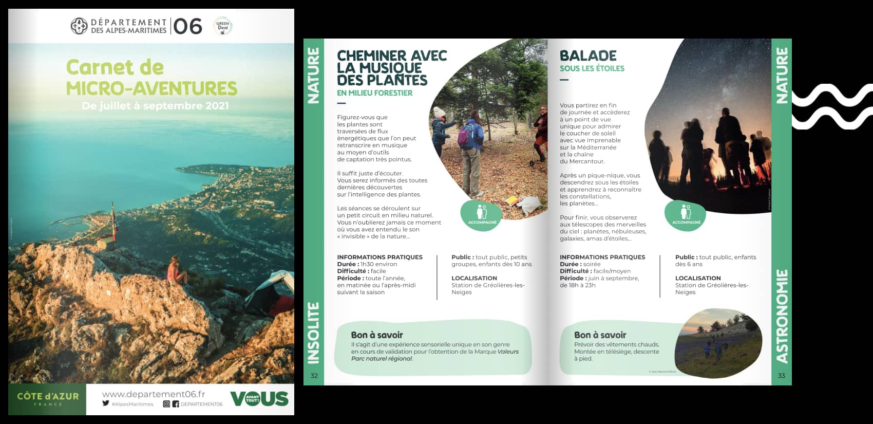 Le Département des Alpes-Maritimes a lancé pour l’été 2021 un carnet de microaventures répertoriant 50 expériences en plein air pour ses locaux et touristes. De quoi parcourir le territoire en fonction de ses envies.
