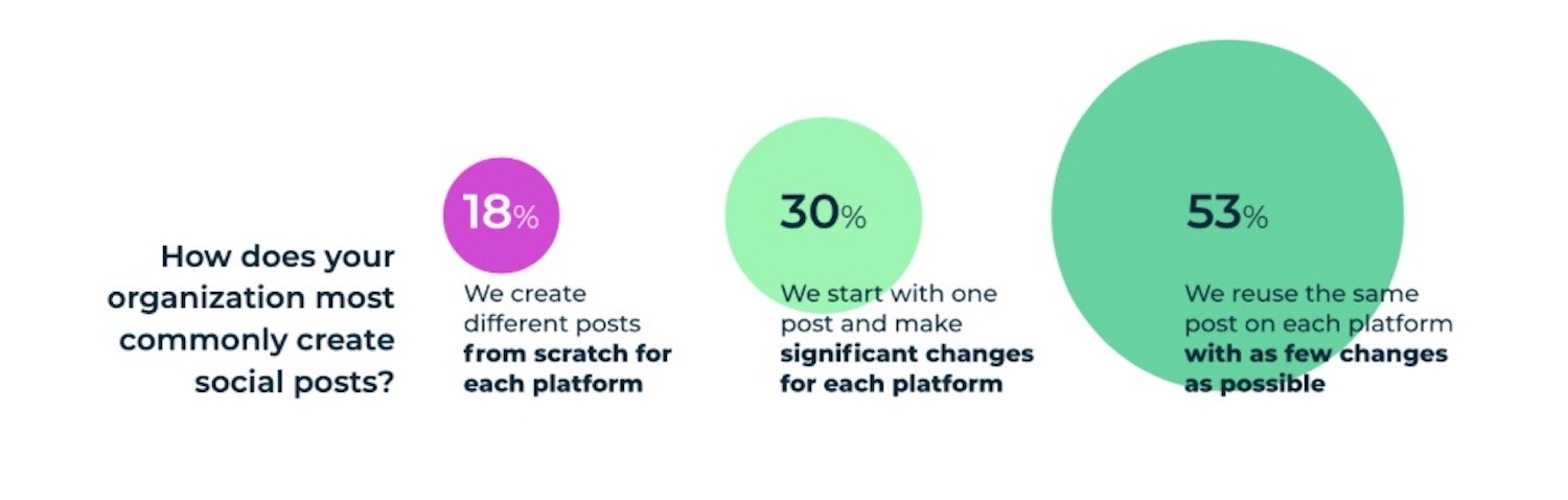 53% des entreprises créent des publications similaires quelle que soit la plateforme social media de diffusion3.