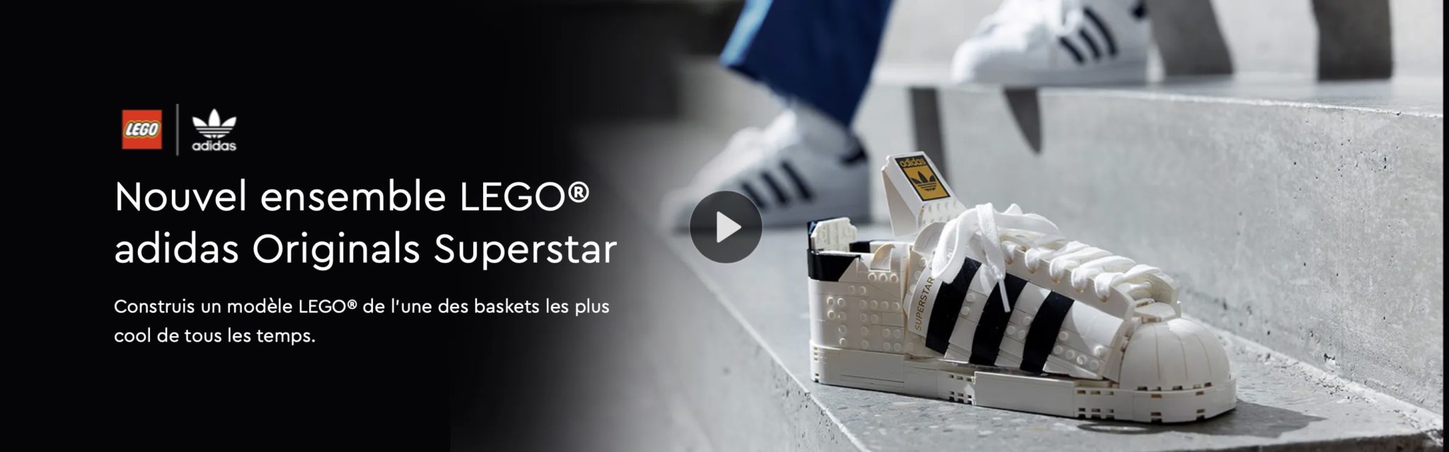 Lego et Adidas n’en sont pas à leur première collaboration. Depuis 2019, les deux marques croisent leurs univers pour le plus grand bonheur des fans.En juillet 2021, c’est la célèbre sneakers Originals Superstar qui est mise sous le feu des projecteurs.