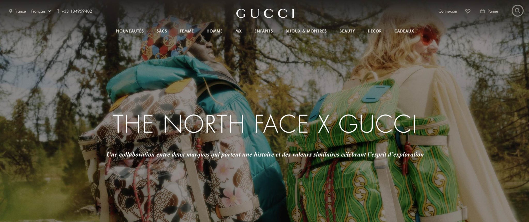 En partageant leurs audiences, les marques s’ouvrent à de nouveaux publics, voire à de nouveaux codes (voir exemple ci-dessous : The North Face x Gucci, quand l’outdoor rencontre le luxe).