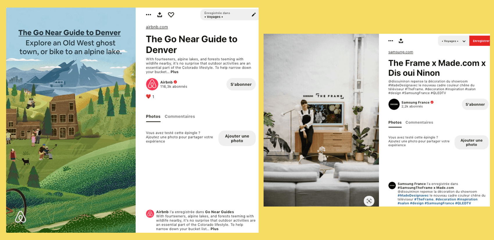 Grâce à ses fonctionnalités, les marques peuvent mettre en avant leurs produits et leurs idées dans des formats différents : photos, vidéos… Elles ont également la possibilité d’interagir et d’échanger avec leur audience par l’intermédiaire des réactions et commentaires. Les campagnes de publicités sur Pinterest sont également un levier important, permettant de développer la visibilité de la marque et de toucher plus d’utilisateurs susceptibles d’être intéressés et inspirés par les idées proposées par les marques.